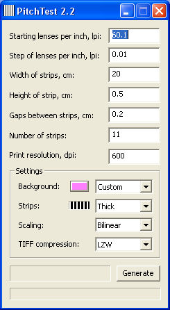 Pitch TestLaunch PitchTest.exe to determine the frequency of lenticular sheet: