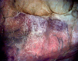 This large figure of a horse facing right is painted in violet. Its conservation is not ideal, as it is affected by calcite formations in the area of its neck and limbs. Its outline is quite diffuse.